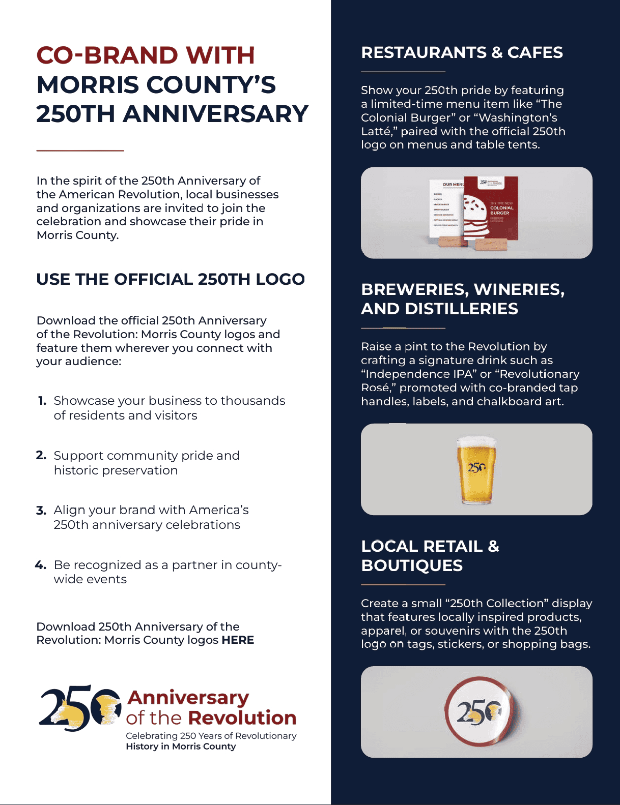 - Official 250th Anniversary of the Revolution: Morris County logos