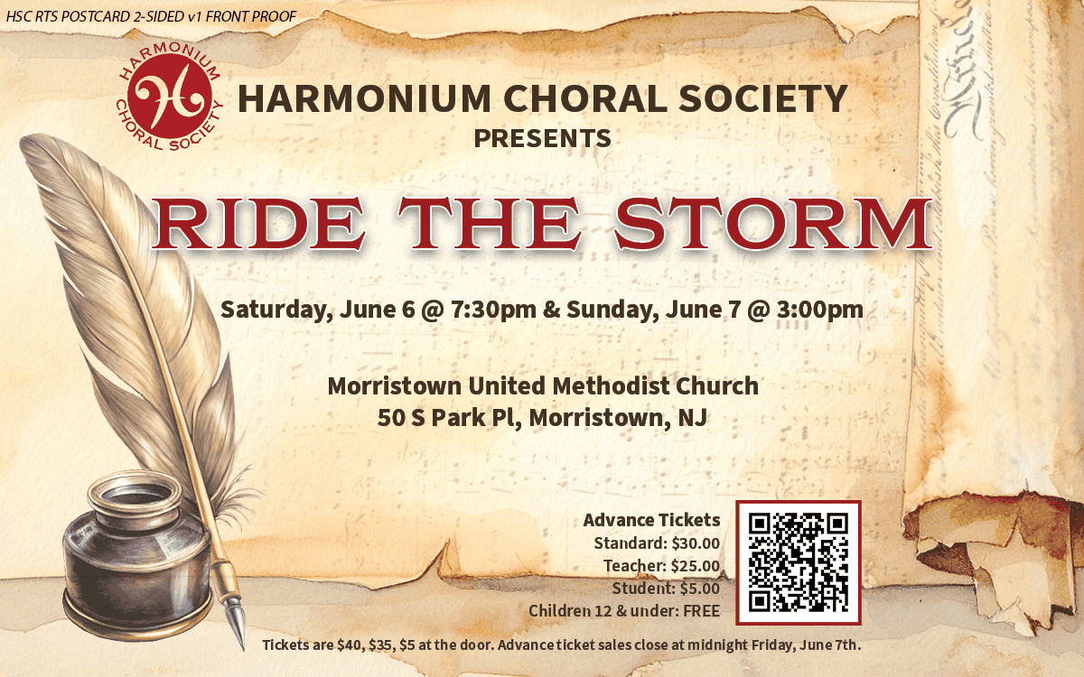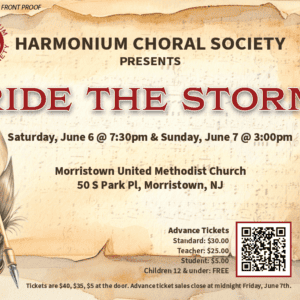 Our June 6–7 concert Ride the Storm will be held at Morristown United Methodist Church, 50 S Park Pl, Morristown, NJ.