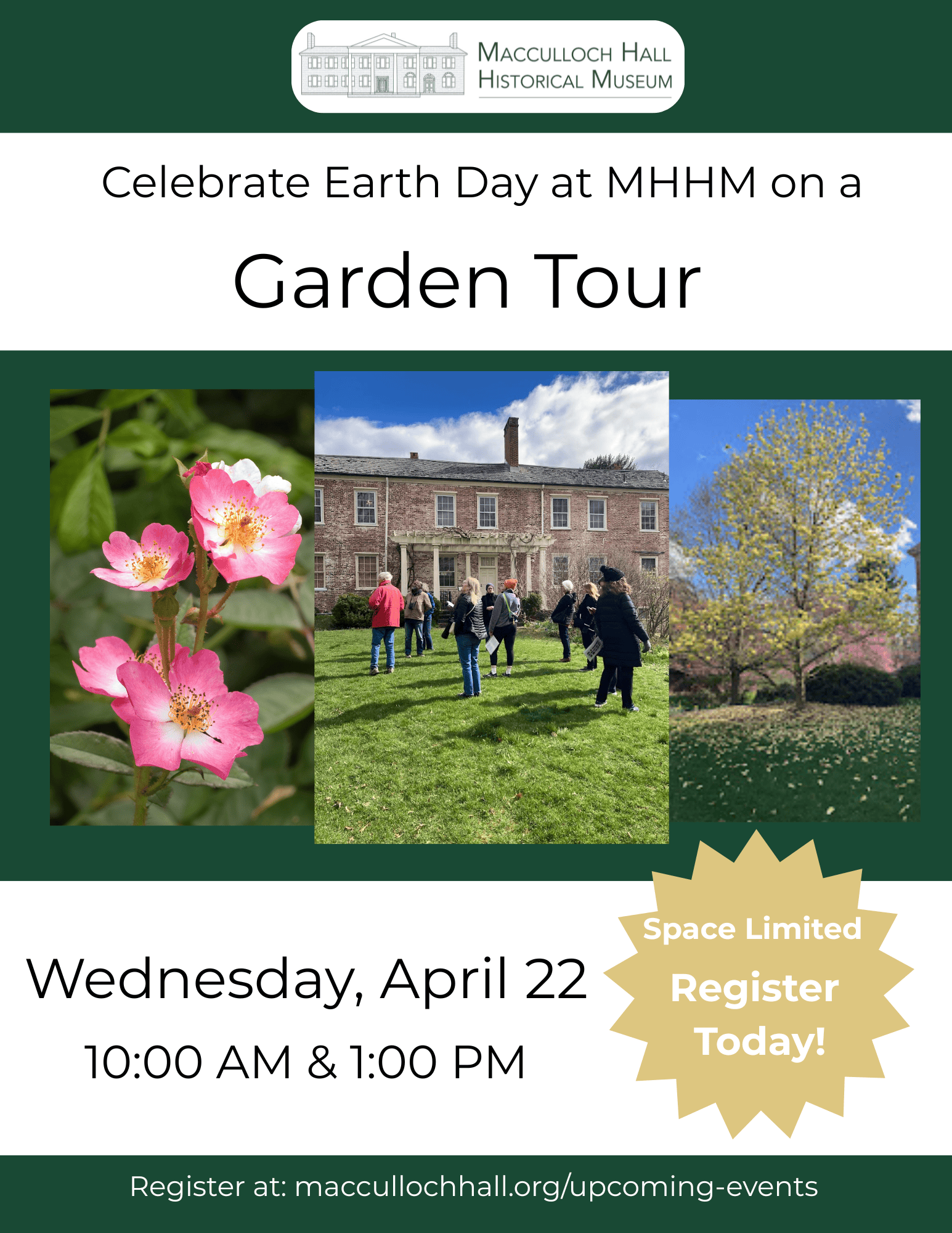 Celebrate Earth Day with a sensory journey through the gardens at Macculloch Hall Historical Museum! Discover the vibrant sights, fragrant blooms, and rich history of a landscape that has been growing since the first roses were planted in 1810. Explore how the garden has evolved to include native plants that support local biodiversity, and stop by the Teaching Beds to uncover the property’s agricultural roots and their impact on the Museum’s work today.