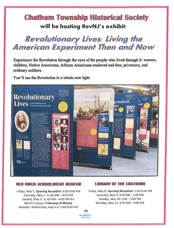 Chatham Township Historical society will be hosting: Revolutionary Lives: Living the American Experiment Then and Now.