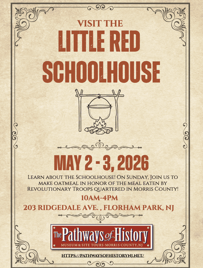 Learn more about the Schoolhouse! On Sunday, join us to make oatmeal in honor of the meal eaten by Revolutionary Troops quartered in Morris County!