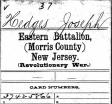 Joseph Hedges was born around 1749. Not much is known of his family, though he was probably related in some way to other local Revolutionary soldiers of Morris County, Elias Hedges, Jeremiah Hedges, and Sylvanus Hedges. He served as a Private in the Eastern Battalion of the Morris County Militia (according to Compiled Military Service Records), and in Colonel Oliver Spencer’s Regiment of the Continental Army (according to his pension record).